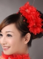 Home >  Accessories >  Headpieces > Red Chiffon Big Flowers With Beading For Wedding