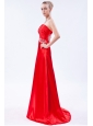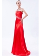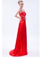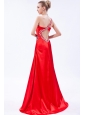 Red Column One Shoulder Prom Dress Taffeta Beading and Ruch Brush Train