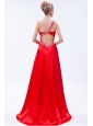 Home >  Prom Dresses >  Sexy Prom Dresses > Red Column One Shoulder Prom Dress Taffeta Beading and Ruch Brush Train