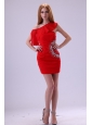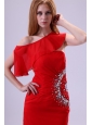 Home >  Prom Dresses >  Short Prom Dresses > Red Column One Shoulder Sexy Prom Dress with Beading