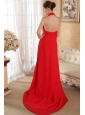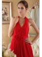 Home >  Prom Dresses >  Cheap Prom Dresses > Red Column / Sheath Halter Court Train Chiffon Hand Made Flowers and Ruch Prom / Evening Dress