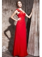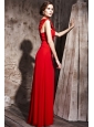Red Column / Sheath One Shoulder Floor-length Chiffon Beading Prom / Evening Dress
