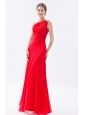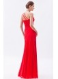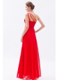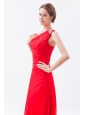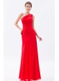 Red Column / Sheath One Shoulder Prom Dress Chiffon Beading Floor-length