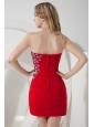 Red Column / Sheath Strapless Beading Short Prom Dress Mini-length Chiffon