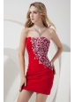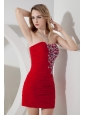 Home >  Prom Dresses >  Short Prom Dresses > Red Column / Sheath Strapless Beading Short Prom Dress Mini-length Chiffon
