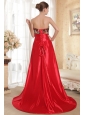 Home >  Prom Dresses >  Cheap Prom Dresses > Red Column / Sheath Sweetheart Court Train Taffeta Beading and Bow Prom / Evening Dress