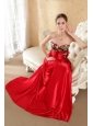 Red Column / Sheath Sweetheart Court Train Taffeta Beading and Bow Prom / Evening Dress