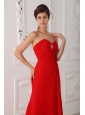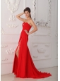 Red Column / Sheath Sweetheart Sweep / Brush Train Chiffon Beading Prom Dress