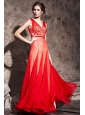 Home >  Evening Dresses > Red Column / Sheath V-neck Floor-length Chiffon Beading Prom / Evening Dress