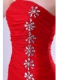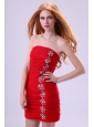 Red Column Strapless Mini-length Beading Taffeta Prom Dress with Beading
