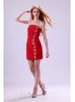 Home >  Prom Dresses >  Short Prom Dresses > Red Column Strapless Mini-length Beading Taffeta Prom Dress with Beading