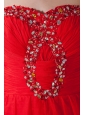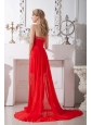 Red Column Strapless Prom / Homecoming Dress Beading High-low Chiffon