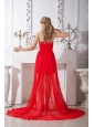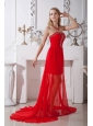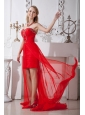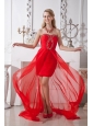 Home >  Prom Dresses >  High Low Prom Dresses > Red Column Strapless Prom / Homecoming Dress Beading High-low Chiffon