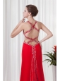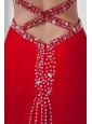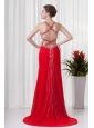 Red Column Straps Brush Train Chiffon Beading Criss Cross Prom Dress