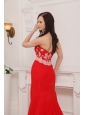 Red Column Sweetheart Brush Train Chiffon Appliques Prom / Pageant Dress