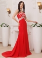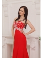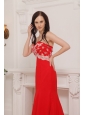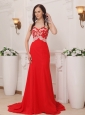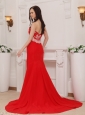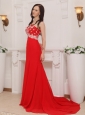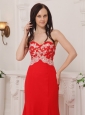 Home >  Prom Dresses >  Best Prom Dresses > Red Column Sweetheart Brush Train Chiffon Appliques Prom / Pageant Dress