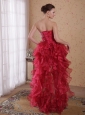 Red Column Sweetheart High-low Organza Beading Prom / Cocktail Dress