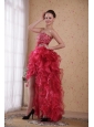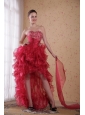 Home >  Prom Dresses >  High Low Prom Dresses > Red Column Sweetheart High-low Organza Beading Prom / Cocktail Dress
