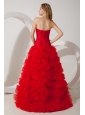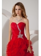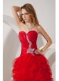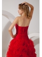 Red Column Sweetheart High-Low Organza Beading Prom / Evening Dress
