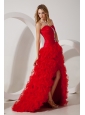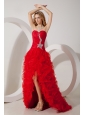 Home >  Prom Dresses >  High Low Prom Dresses > Red Column Sweetheart High-Low Organza Beading Prom / Evening Dress