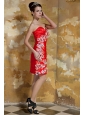 Home >  Prom Dresses >  Short Prom Dresses > Red Column Sweetheart Mini-length Taffeta Hand Made Flowers Prom Dress