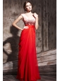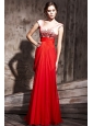 Home >  Prom Dresses >  Discount Prom Dresses > Red Column V-neck Floor-length Chiffon Beading Prom / Evening Dress
