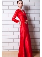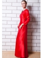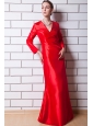 Red Column V-neck Floor-length Taffeta Mother Of The Bride Dress
