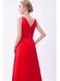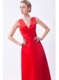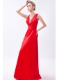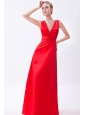 Red Column V-neck Floor-length Taffeta Ruch Bridesmaid Dress