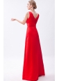 Home >  Bridesmaid Dresses >  Cheap Bridesmaid Dresses > Red Column V-neck Floor-length Taffeta Ruch Bridesmaid Dress