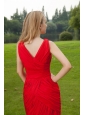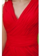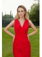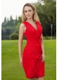 Red Column V-neck Mini-length Chiffon Ruch Prom / Homecoming Dress