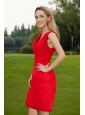 Sugar and Spice ! This red short prom dress will make you sparkle the whole day and night! This one has a V-neckline and a wide waistband make a way for the sexy deep V-shap in the back. A fitting skirt is accented with twisted plungging pleating perfectly show off your Fun and flirty!
