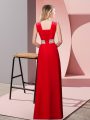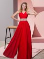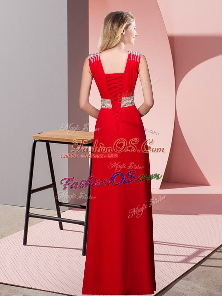 Red Dress for Prom Prom and Party and Military Ball with Beading V-neck Sleeveless Lace Up