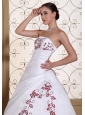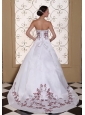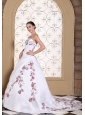 Home >  Wedding Dresses >  Latest Wedding Dresses > Red Embroidery On Satin A-line Modest Wedding Dress For 2013