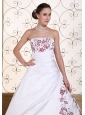 Red Embroidery On Satin A-line Modest Wedding Dress For 2013