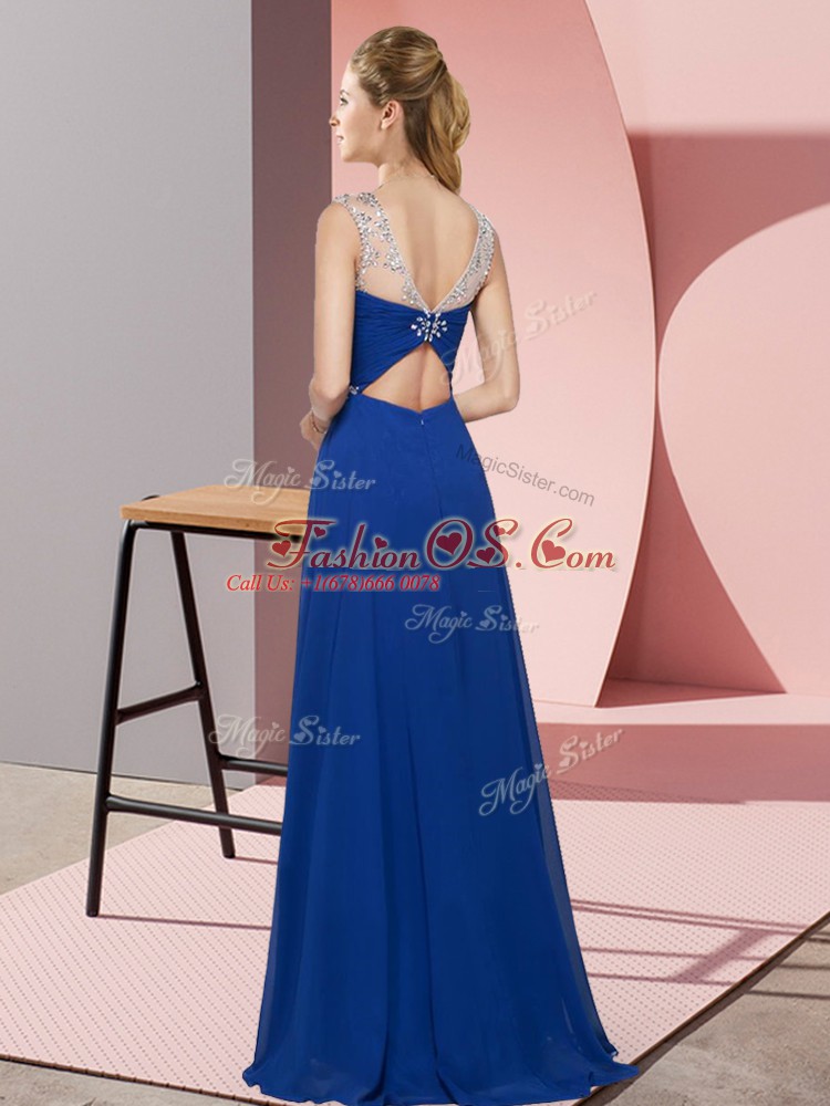 Red Empire Beading Juniors Party Dress Backless Chiffon Sleeveless Floor Length