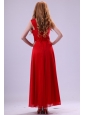 Red Empire Beading Straps Ankle-length Chiffon Prom Dress