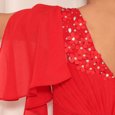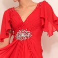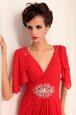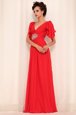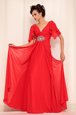 Red Empire Chiffon V-neck Short Sleeves Beading Floor Length Zipper