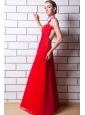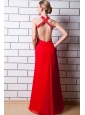 Red Empire Halter Prom Dress Chiffon Rhinestone Floor-length