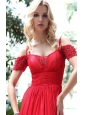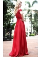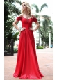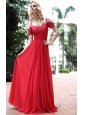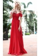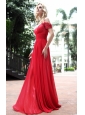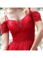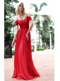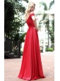 Home >  Prom Dresses >  Discount Prom Dresses > Red Empire Off the Shoulder Floor-length Chiffon Pleat and Beading Prom Dress