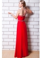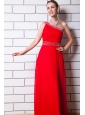 Red Empire One Shoulder Floor-length Chiffon Beading Homecoming Dress