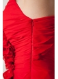 Home >  Prom Dresses >  Cheap Prom Dresses > Red Empire One Shoulder Hand Made Flowers Prom / Evening Dress Brush Train Chiffon