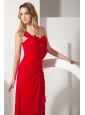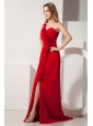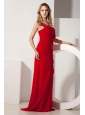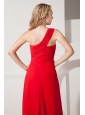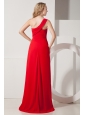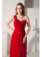 Red Empire One Shoulder Hand Made Flowers Prom / Evening Dress Brush Train Chiffon