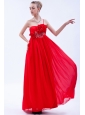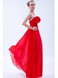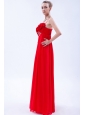 Home >  Prom Dresses >  Cheap Prom Dresses > Red Empire One Shoulder Prom Dress Chiffon Beading and Hand Made Flowers Floor-length
