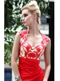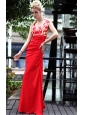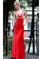 Home >  Prom Dresses >  Discount Prom Dresses > Red Empire Scoop Neck Floor-length Taffeta Appliques Prom Dress