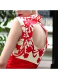 This one features a round neck with wrapped details and a pretty print flower in the bodice. The amazing A-line skirt is reminiscent of the pleated skirts. The dress sways beautifully across the floor when you move, as if you're floating on air. The special style in the back make the dress more sexy.
