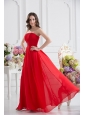 Red Empire Strapless Chiffon Floor-length Prom Dress