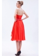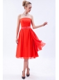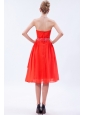 Red Empire Strapless Prom Dress Chiffon Beading Knee-length