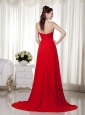 Red Empire Sweetheart Brush Train Chiffon Appliques and Ruch Prom / Celebrity Dress