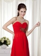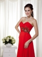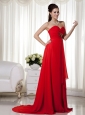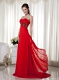 Home >  Prom Dresses >  Cheap Prom Dresses > Red Empire Sweetheart Brush Train Chiffon Appliques and Ruch Prom / Celebrity Dress
