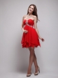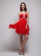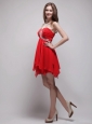 Red Empire Sweetheart Neck Mini-length Chiffon Beading Prom / Homecoming Dress